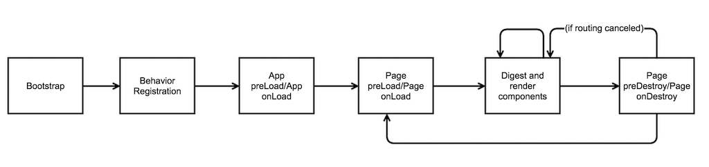 | FEF Bootstrap / Behavior Registration | App preLoad | App onLoad | Page preLoad | Page onLoad | Page Render | Digest | Page preDestroy | Page onDestroy | |